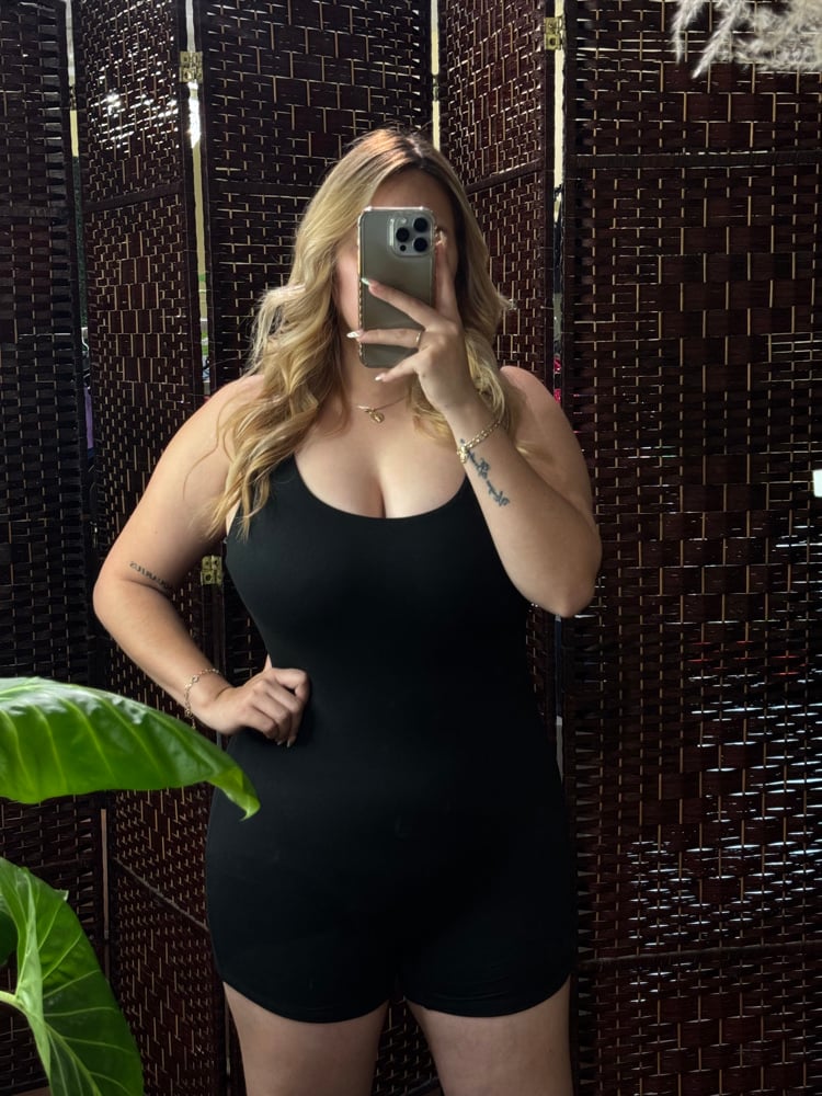 Black Romper Scoop Neck Double Layered Tank Biker Suit